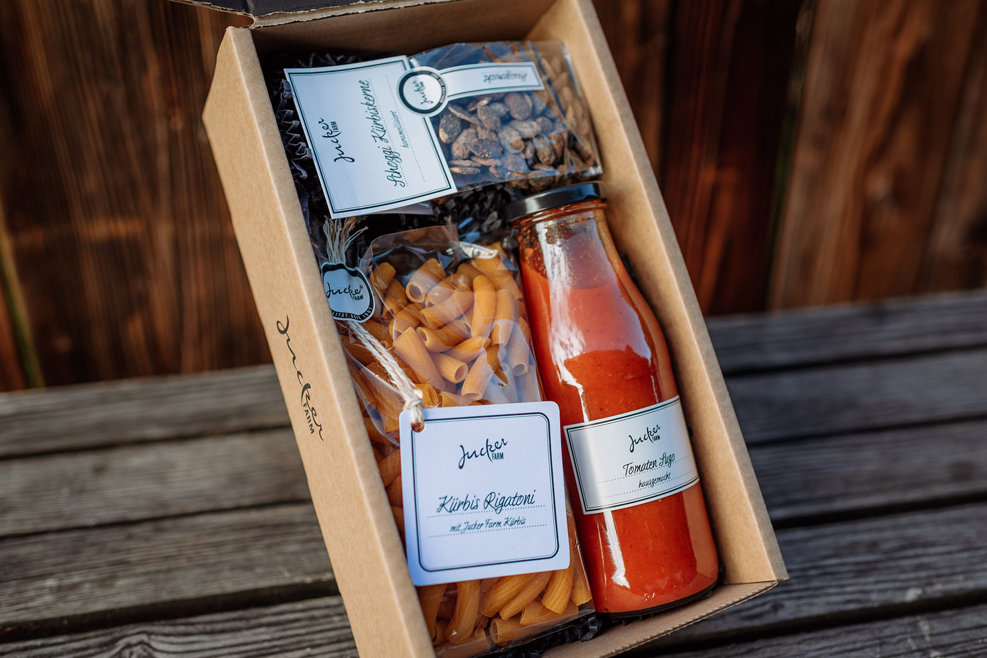 Dieses Geschenkset beinhaltet eine Packung feiner Kürbis-Rigatoni sowie den passenden Sugo. Und weil nach dem Essen etwas Süsses nie fehlen darf, gibt’s noch knackige Schoggi-Kürbiskerne obendrauf.