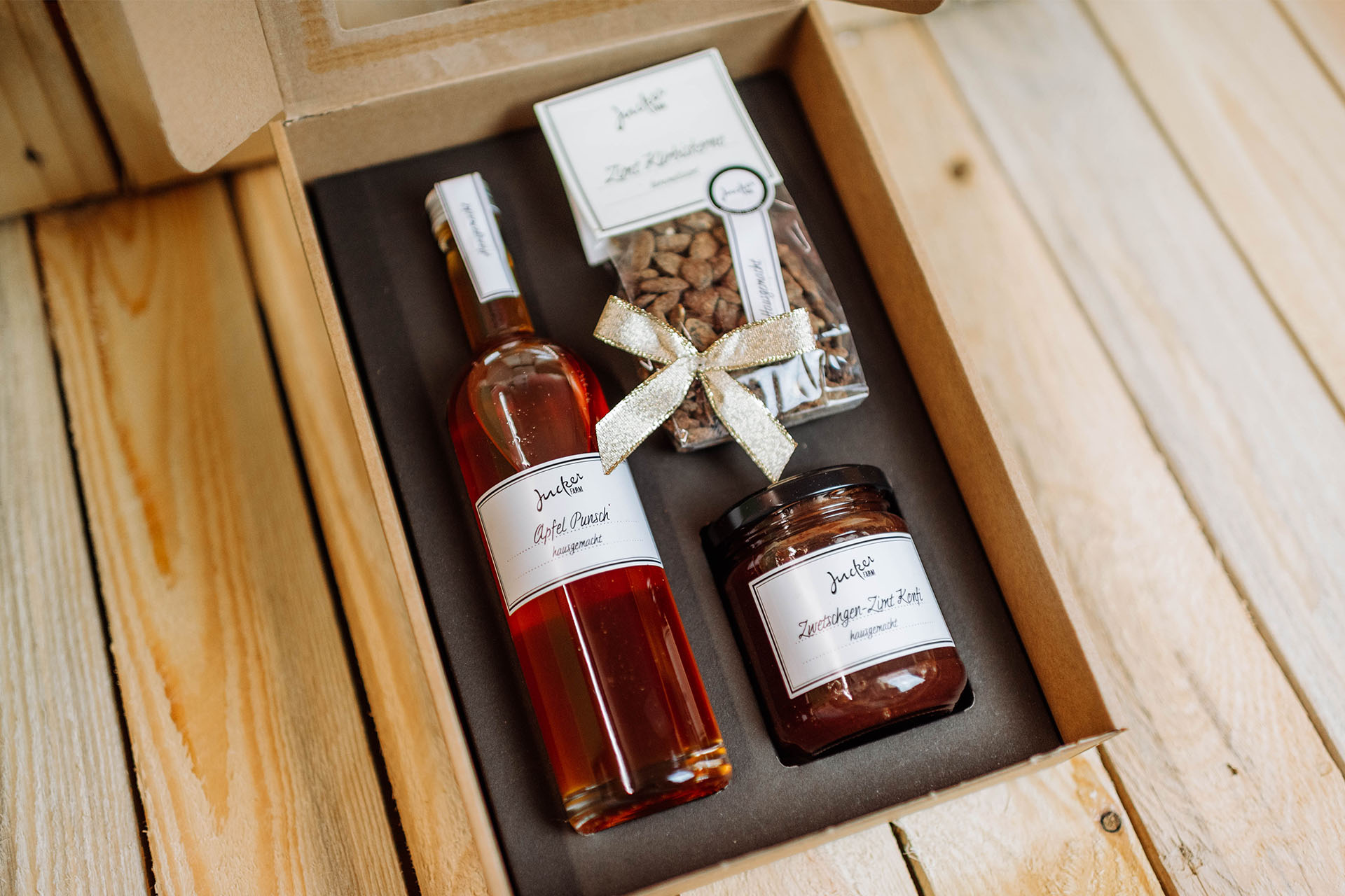 Verschenke dieses Jahr etwas Besonderes mit unserer stilvollen Geschenkbox. Diese kleine aber feine Geschenkkiste ist das perfekte Weihnachtsgeschenk für Genussmenschen und alle, die hochwertige, nachhaltige und regionale Produkte schätzen.