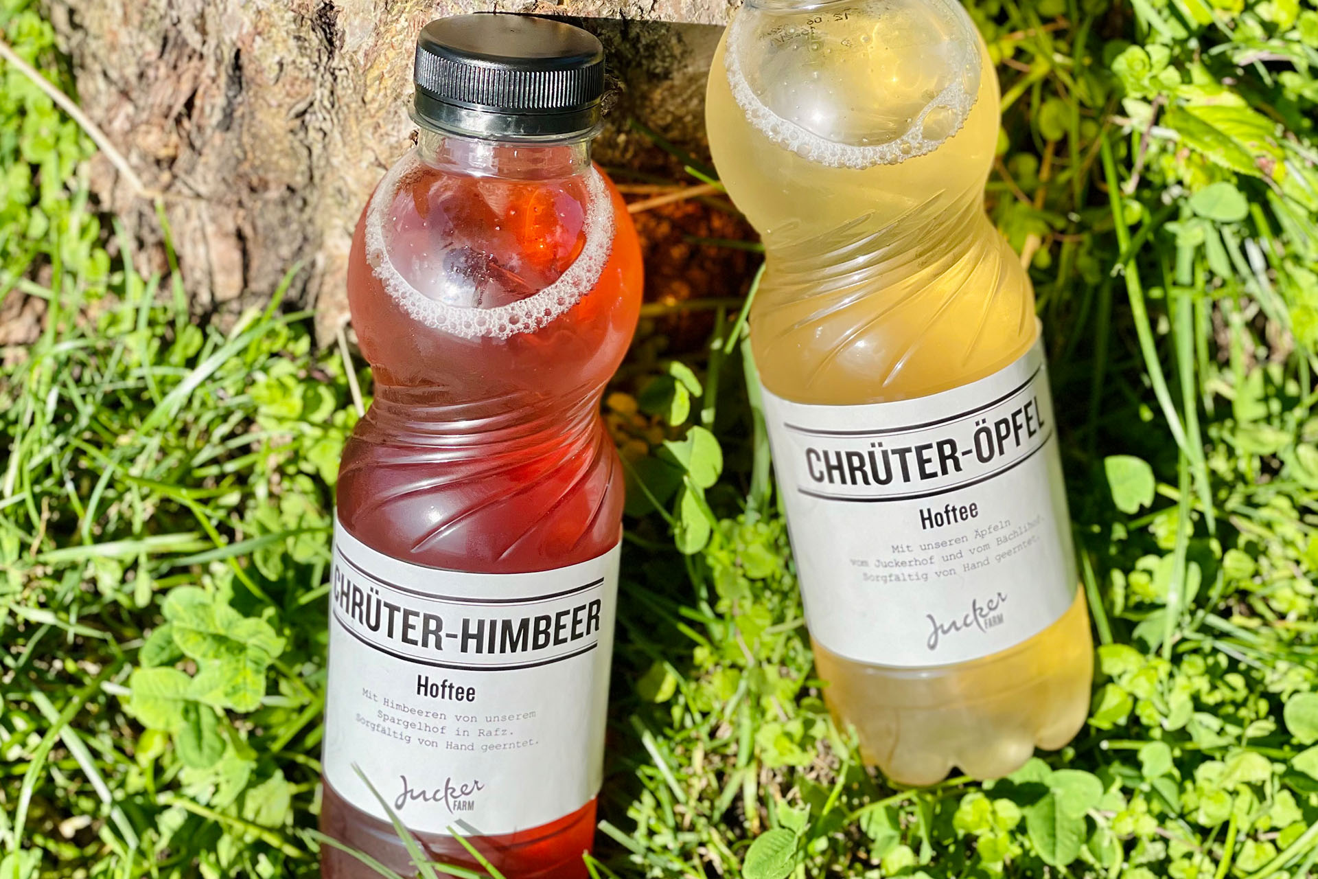 Teeaufguss aus Hagebutte, verfeinert mit Holunder- und Himbeersaft. Dank unserer neuen Rezeptur mit weniger Zucker ist der Hoftee jetzt noch gesünder! Am besten eisgekühlt die Kräuternoten geniessen! Hergestellt und abgefüllt wird der Tee bei unserem Partner Holderhof. Der Hoftee ist ein fruchtiger Kräutertee, den es auch in der Variante mit Apfel gibt. Oder wie wärs mit einem Apfelshorli?