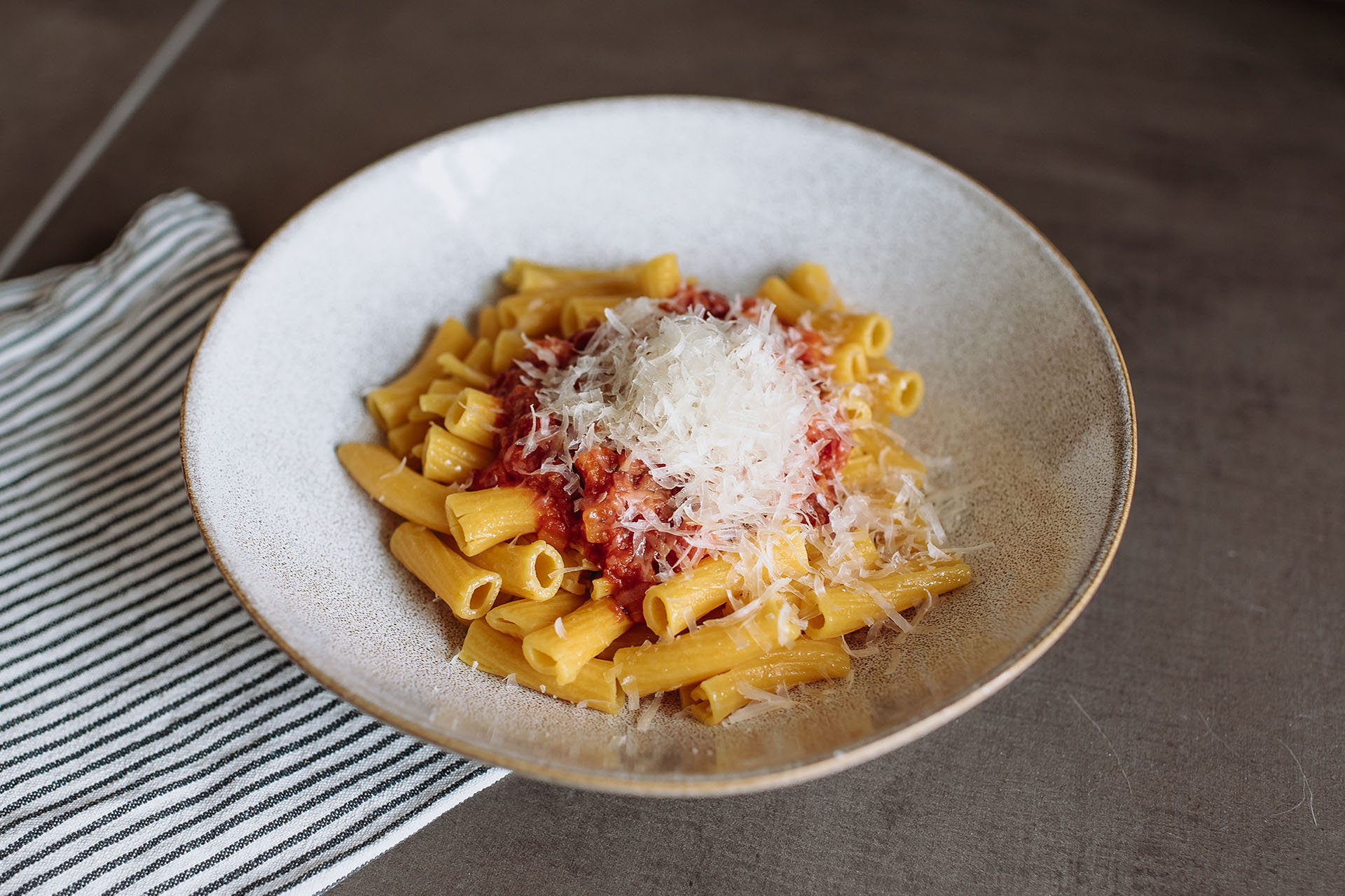 Lust auf einen schnellen Znacht oder Zmittag mit einer zünftigen Portion Gemüse? Dann sind unsere Rigatoni mit Kürbis genau das Richtige. Die feine Kürbisnote verleiht der Pasta eine besondere Aromatik, die sowohl zu klassischen Tomatensaucen als auch zu cremigen Saucen perfekt passt.